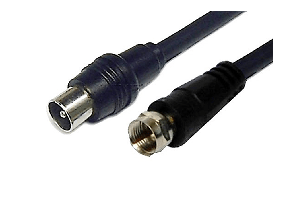 This 2 Meter coaxial cable connects and converts between the standard PAL TV Antenna plug and the screw-in F-Type Coaxial Aerial plug. An RF cable is also known as a cord or lead.