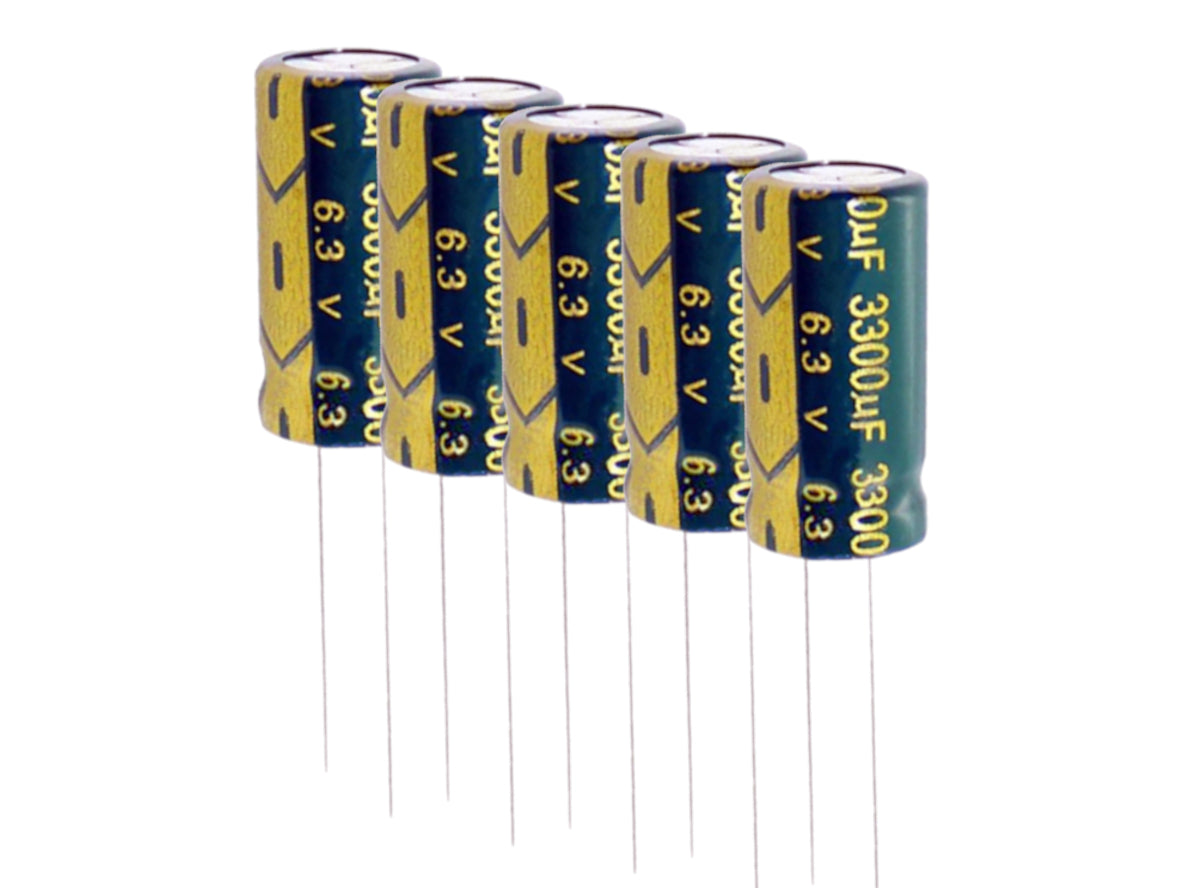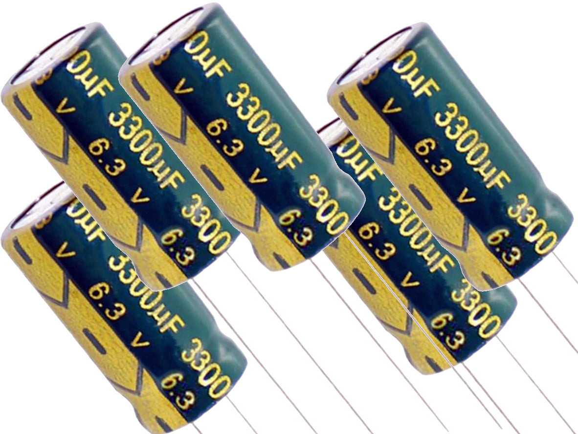 Package includes: 5x 3300uf 6.3 volt capacitors.