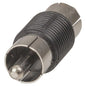 The Male RCA Plug to Male RCA Plug Audio Video Connector Adapter is a small, passive device designed to connect two female RCA jacks.