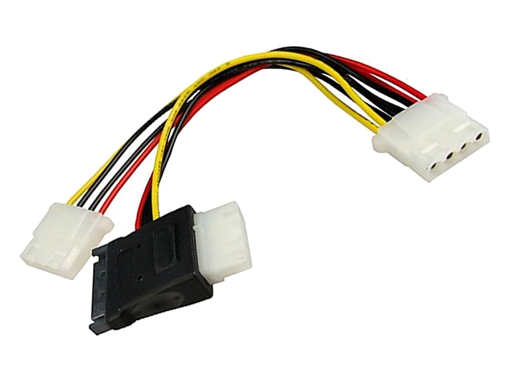 Converts 1x SATA 15P to 2x standard 5.25" Molex power connectors and 1x SATA Power Connector.